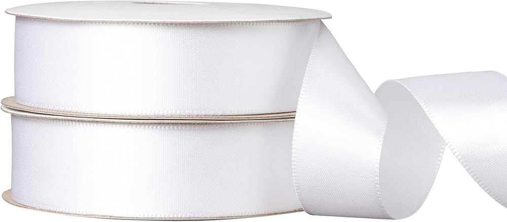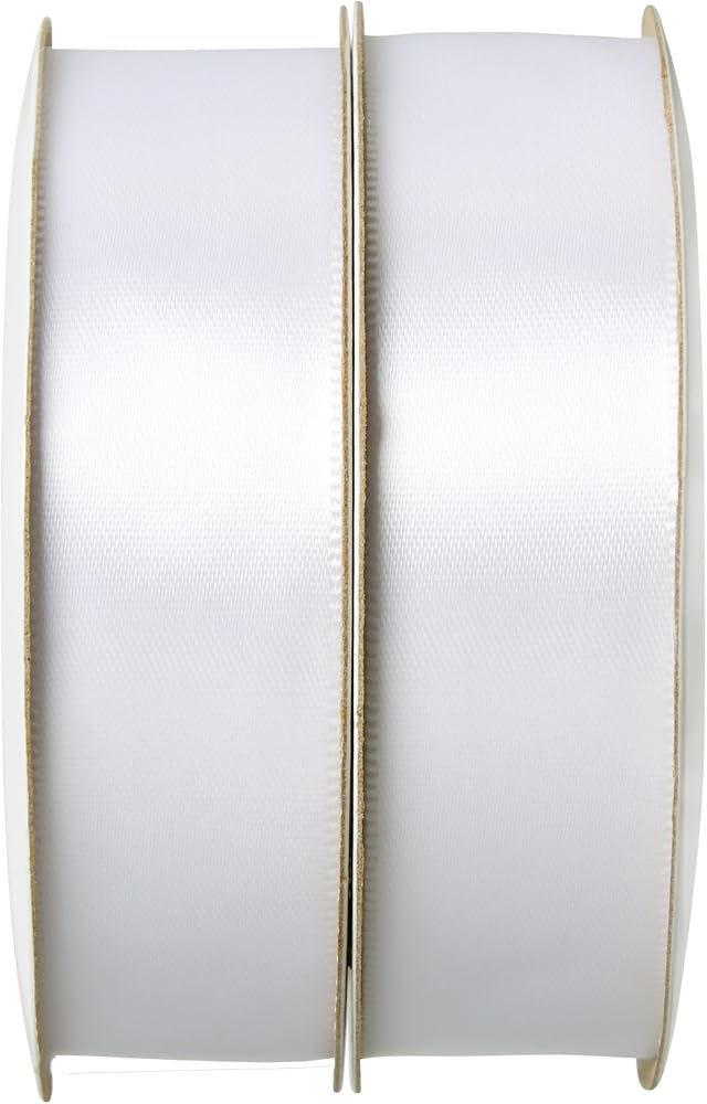 Leaders in ribbon and floral service, products, trend and design ideas, we are one of the largest manufacturers and importers of ribbon in North America. Our vast in-stock product line includes over 20,000 SKUs of woven, cut-edge, printed, extruded, and hot-stamped ribbon along with design accessories. Single face satin is a silky, luxurious style of ribbon that's perfect for seasonal, wedding, and party decor, clothing alterations and sewing projects, hair bows, gift wrapping, and more. Made from 100% high quality polyester, our ribbon is always checked for quality as well as color consistency between spools. Package includes (2) spools of 7/8" (.875") wide white ribbon. Spools contain 6 yards of ribbon each for a total of 12 yards.