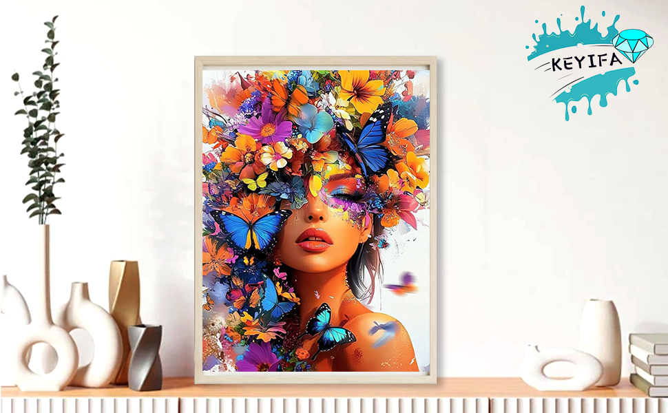 KEYIFA 5D Diamond Art Lady, DIY Diamond Painting Kits for Adults, Round Full Drill, Colorful Flowers Diamonds Dots Mosaic Painting, Crystal Gem Arts Craft for Home Wall Decor 12x16 in