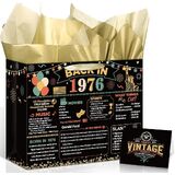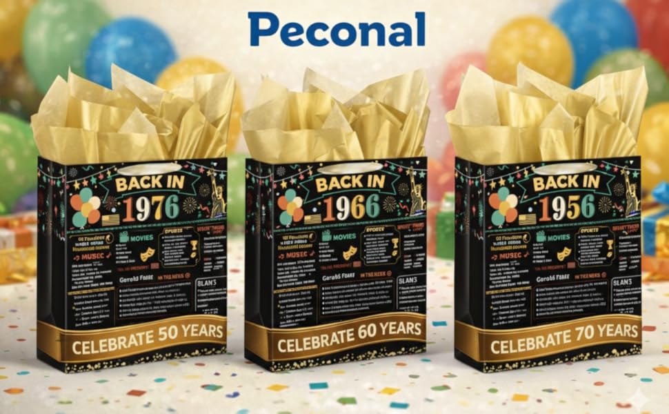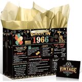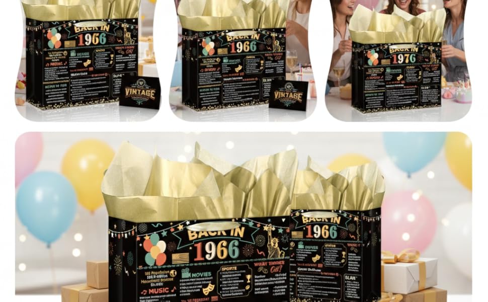 Exquisite Aesthetic: Featuring a rich black and gold vintage design, this 60th birthday gift bag radiates class and nostalgia. Accents of shimmering glitter foil highlight iconic phrases like “Back In 1966,” “MUSIC,” and “MOVIES,” celebrating the memorable cultural moments of that special year. It's more than just a bag—it's a stylish tribute that brings a sense of glamour and sentimental charm to the 60th birthday milestone