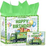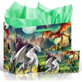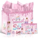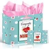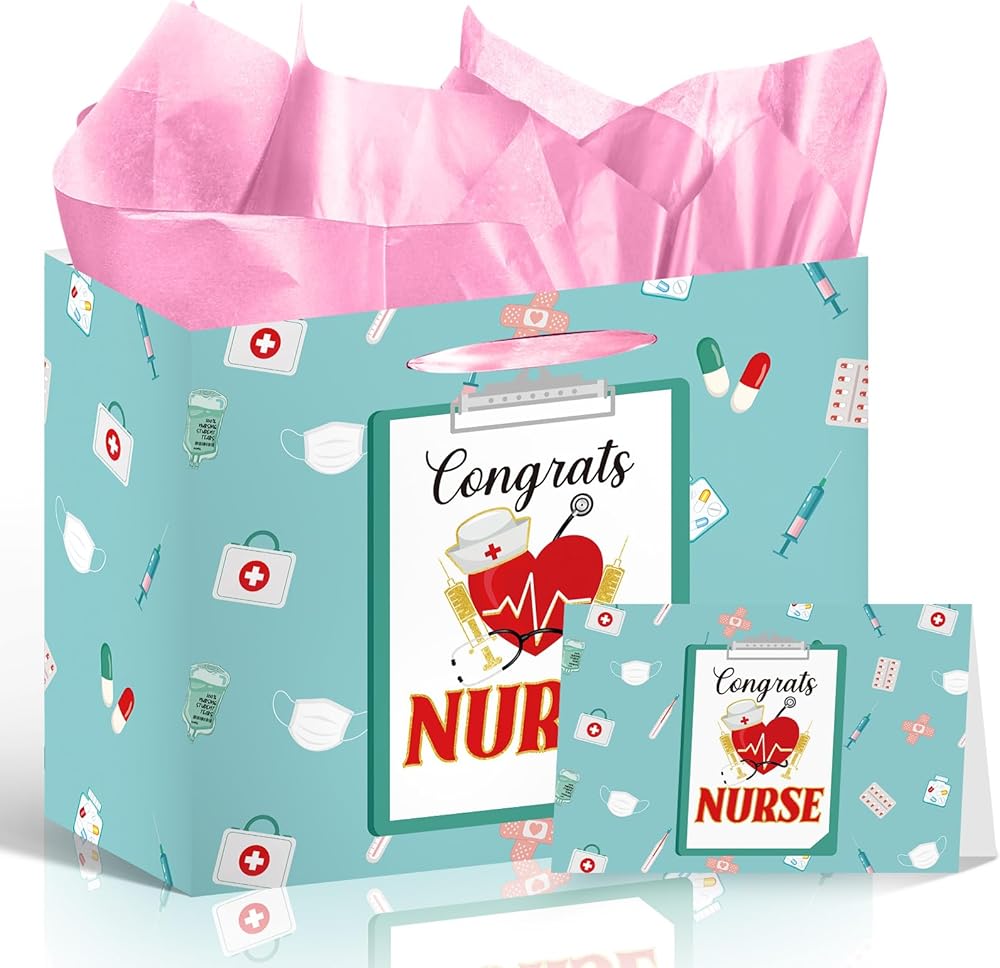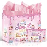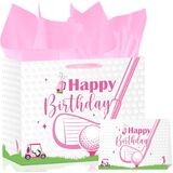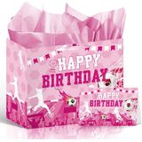 Large Gift Bag: Pink gift bag measures 11.8" W x 9.8" H x 5.3" D, can fully hold birthday gifts or souvenirs, such as books, mugs and so on; Greeting card measures 7.8" W x 5.9" H, there is plenty of space to express your care