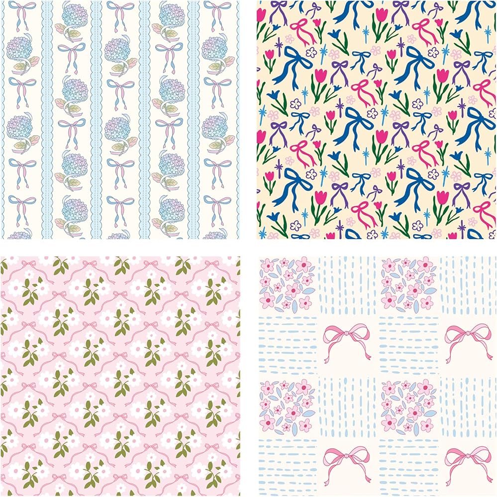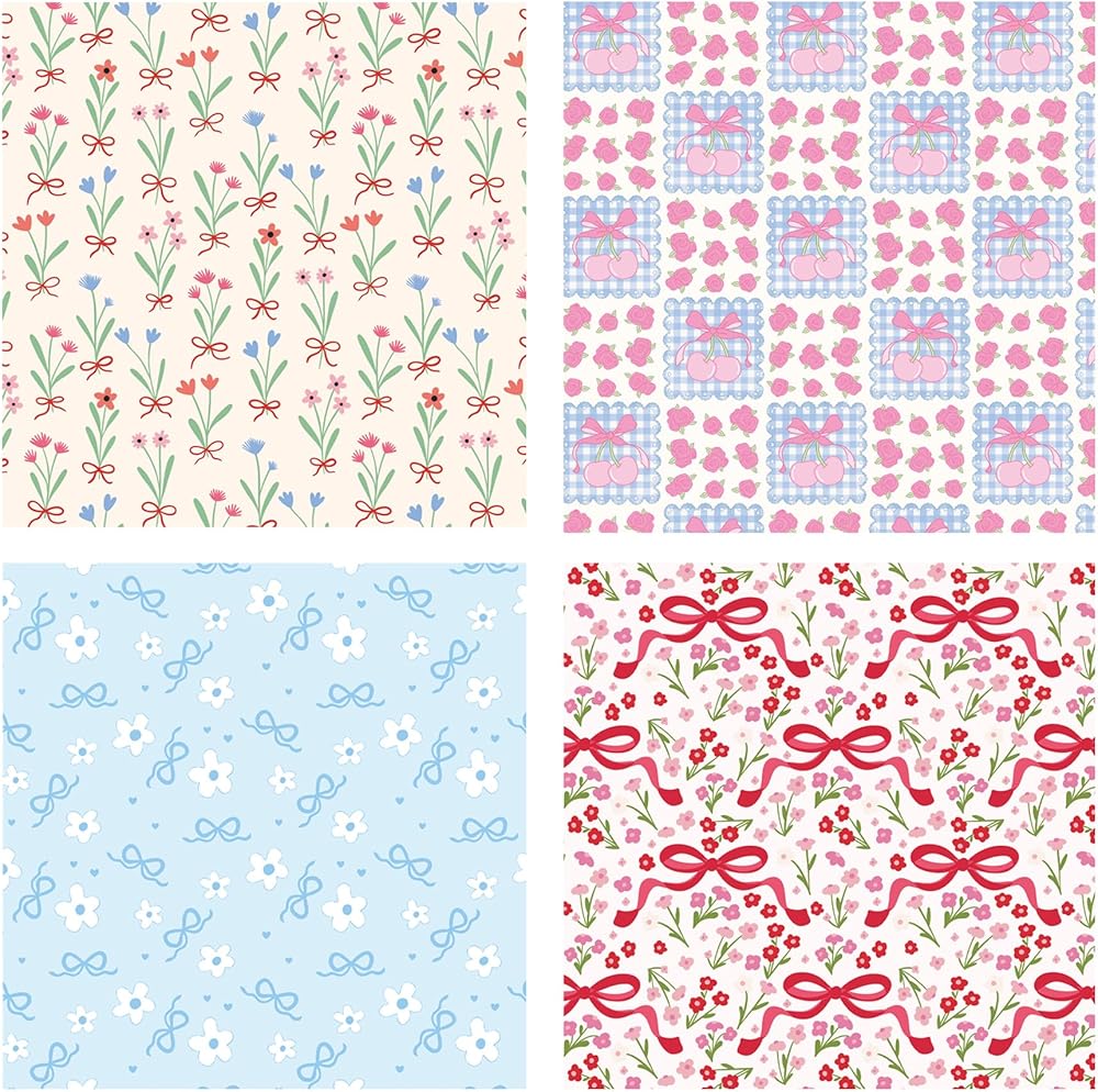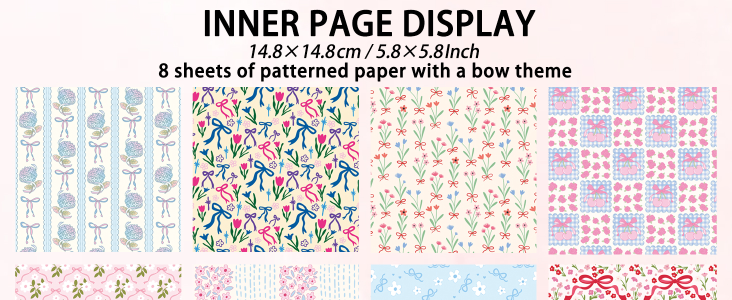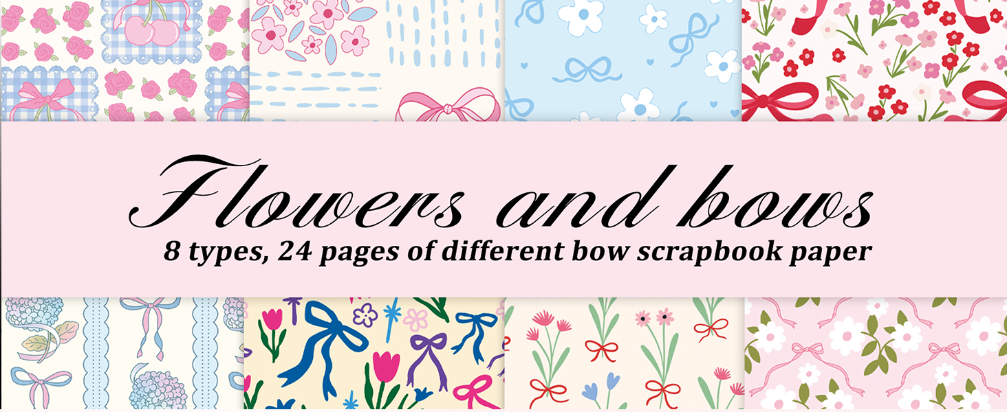 8 Unique Vintage Floral & Bow Designs for Charming Crafts:Features 8 retro-inspired patterns blending delicate floral motifs (roses, tulips, hydrangeas), playful bow accents (gingham, striped, solid colors), and nostalgic backgrounds (cherry grids, dotted stripes, soft pastels). Each design evokes a warm, vintage vibe—perfect for adding whimsy to scrapbooks, journals, or handmade gifts.