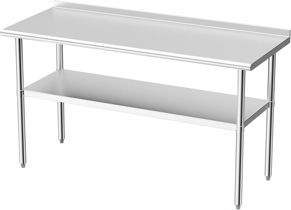 NSF-Certified Multi-Purpose Table: NSF certification ensures this table meets high standards for safety and cleanliness in commercial environments. The rounded front and rear edges enhance comfort and safety during use. Measuring 24 x 48 inches, it provides ample space for kitchen tools, appliances, or storage containers.
