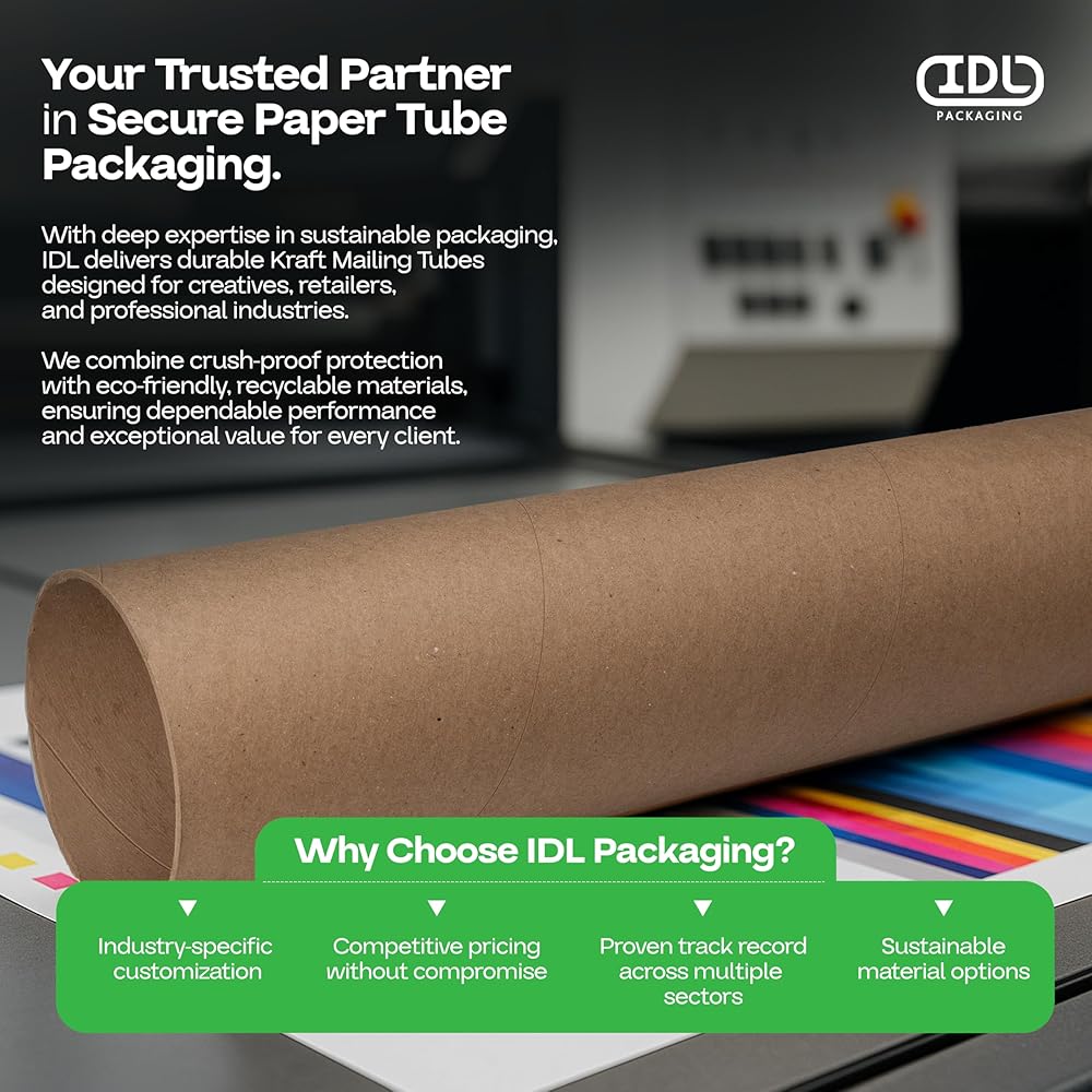 Backed by IDL Packaging's trusted quality and years of experience in protective shipping solutions, these long cardboard tube combine strength, precision, and reliability — ensuring your materials always arrive safely and make a lasting impression.