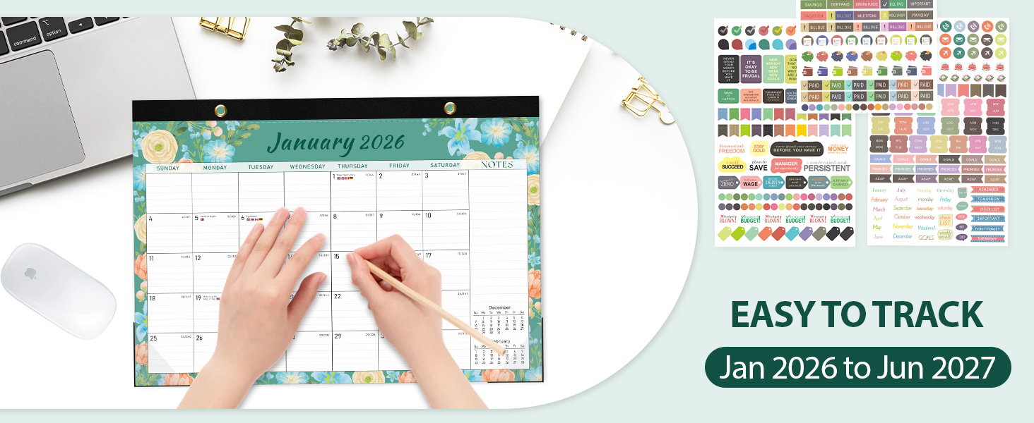 [18-MONTH EXQUISITE DESK CALENDAR] - Covering Jan 2026–Jun 2027, this desk calendar helps you manage long-term projects, academic schedules, and professional goals. The spacious 17" x 12" pages of 2026 calendar feature clearly marked holidays and dates, helping you stay on top of key deadlines and special events.