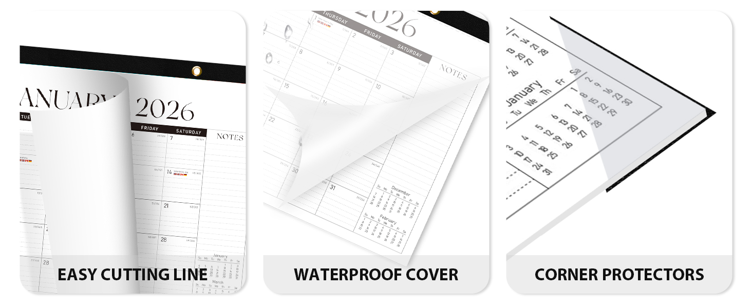 [VERSATILE USAGE] Ideal for home, office, school. With 2 pre-punched top holes + included ribbon: use as a desk calendar (easy to reach) or hang on the wall (easy to see)—choose what fits your space.