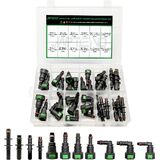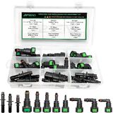 Introduction: 30pcs 11 size includes 9 straight , 6 90 degree elbows and 15 pipe connector fittings (3 different models) Fuel line quick connector repair kit.