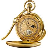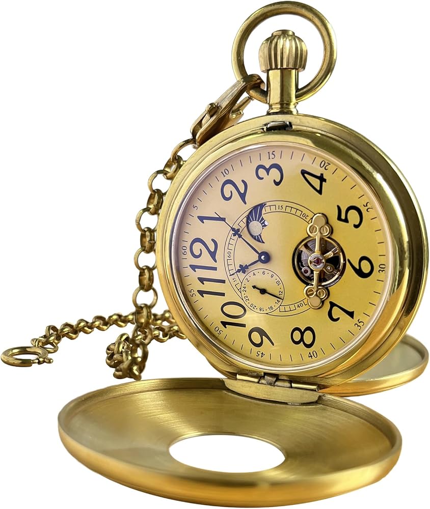 Unique Moon Phase Display - This pocket watch with chain boasts both 24-hour and 12-hour dual display systems, seamlessly integrating Arabic numerals for the 12-hour format and a unique 24-hour indicator. The moon and sun delicately rotate in harmony with the 24-hour cycle, infusing the passage of time with a poetic and romantic allure, rendering it an ideal pocket watch for men or women who cherish such intricate details.