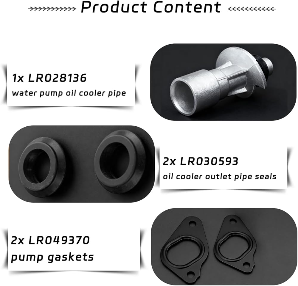 Easy to install: Designed for replace directly, providing a comprehensive repair kit, includes cooler inlet connector, 2pcs pump gaskets and 2pcs oil cooler outlet pipe seals.