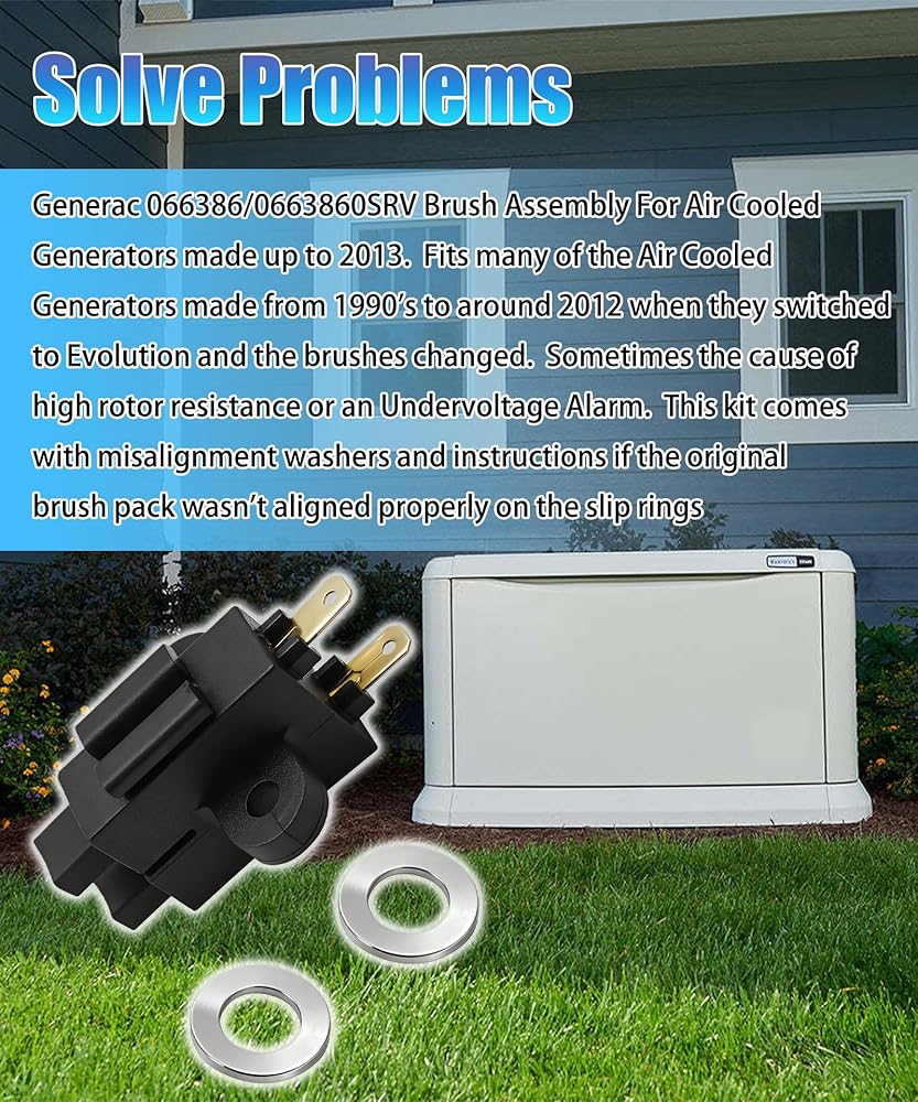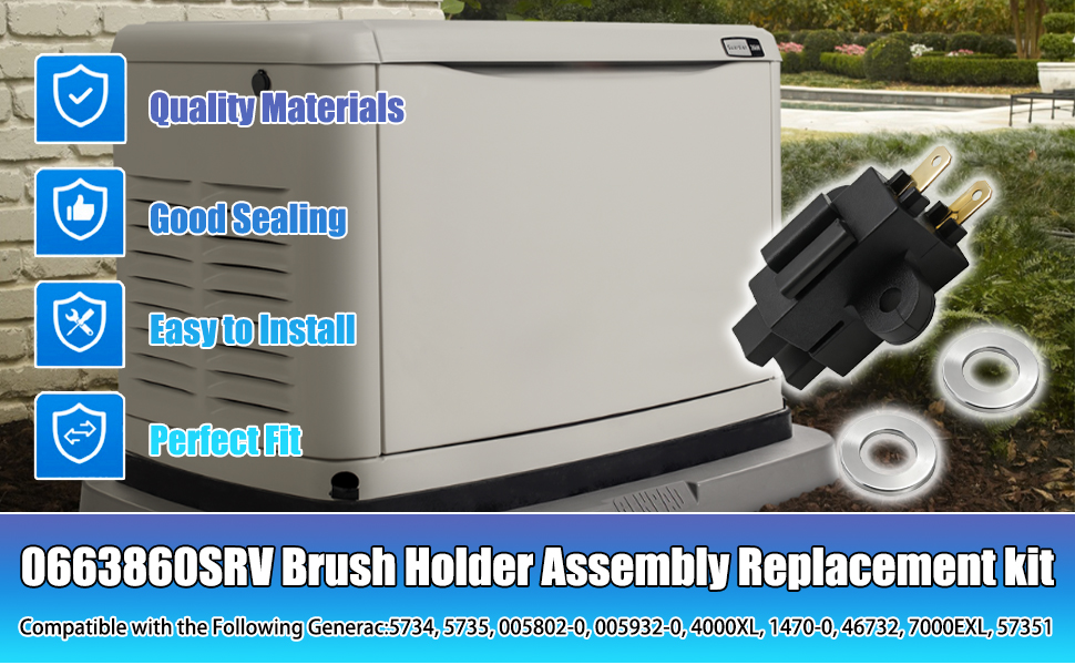 【Widely compatible】:Fits for the following Generac branded generators:Honeywell,Guardian,Siemens,Carrier,Watchdog,Centurion,& Bryant,The brush holder kit is compatible with Generac 5734, 5735, 005802-0, 005932-0, 4000XL, 1470-0, 46732, 7000EXL, 57351 models generator