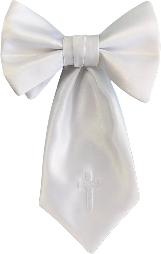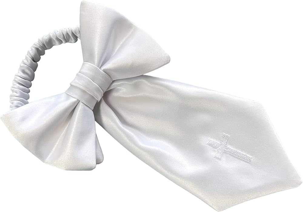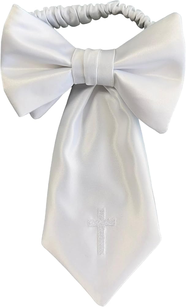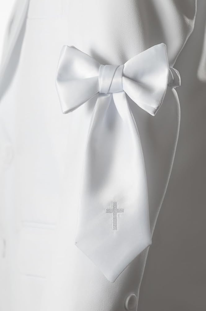 TRADITIONAL HANDMADE ARMBAND: This religious designer neckwear is crafted especially for your First Holy Communion celebration! With a striking white satin and embroidered with religious cross which makes it the perfect piece to complete your special celebration!