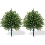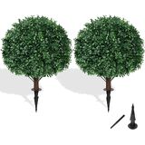 【Grooy ARTIFICIAL BOXWOOD TREE】Enhance your home's aesthetic with our artificial boxwood ball tree. Measuring 16×16×23 inches (including a 7-inch ground spike), each lifelike shrub includes a durable black ground spike, allowing you to plant it in decorative pots and planters or directly into the soil. Its elegant design invites a touch of natural beauty into any setting.