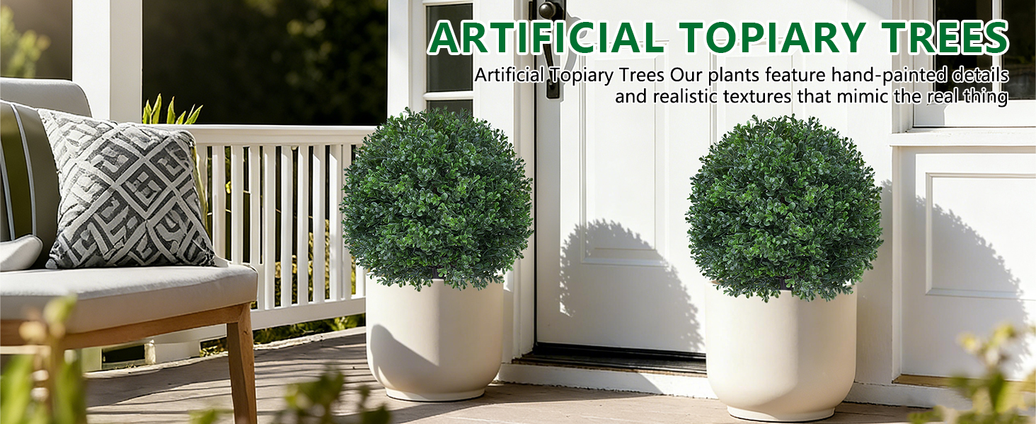 【Lifelike Craftsmanship】Our Lifelike Faux Topiary Ball Trees feature meticulously crafted leaves that replicate the texture and layered green tones of natural boxwood. Combined with a realistic wood-grain trunk, this elegant faux tree delivers exceptional authenticity