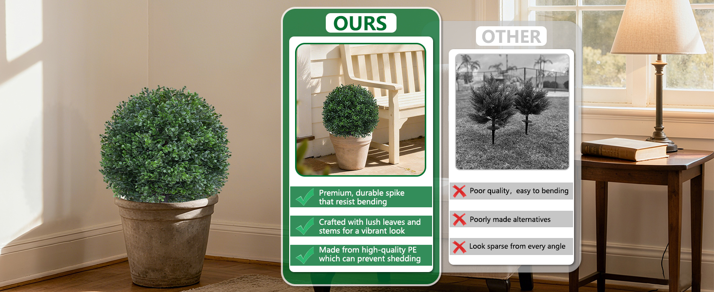 【Customizable Design】Easily adjust the branches and foliage of your boxwood ball shrubs to create the perfect shape. Fallen leaves can be quickly reinserted to maintain their lush, full appearance