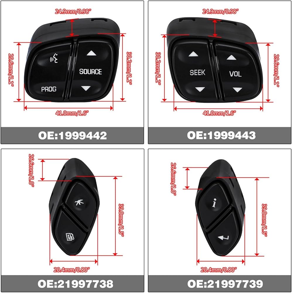 Steering Wheel Control Switch Buttons Seek and Volume Switch Set 21997738,21997739, 1999442, 1999443