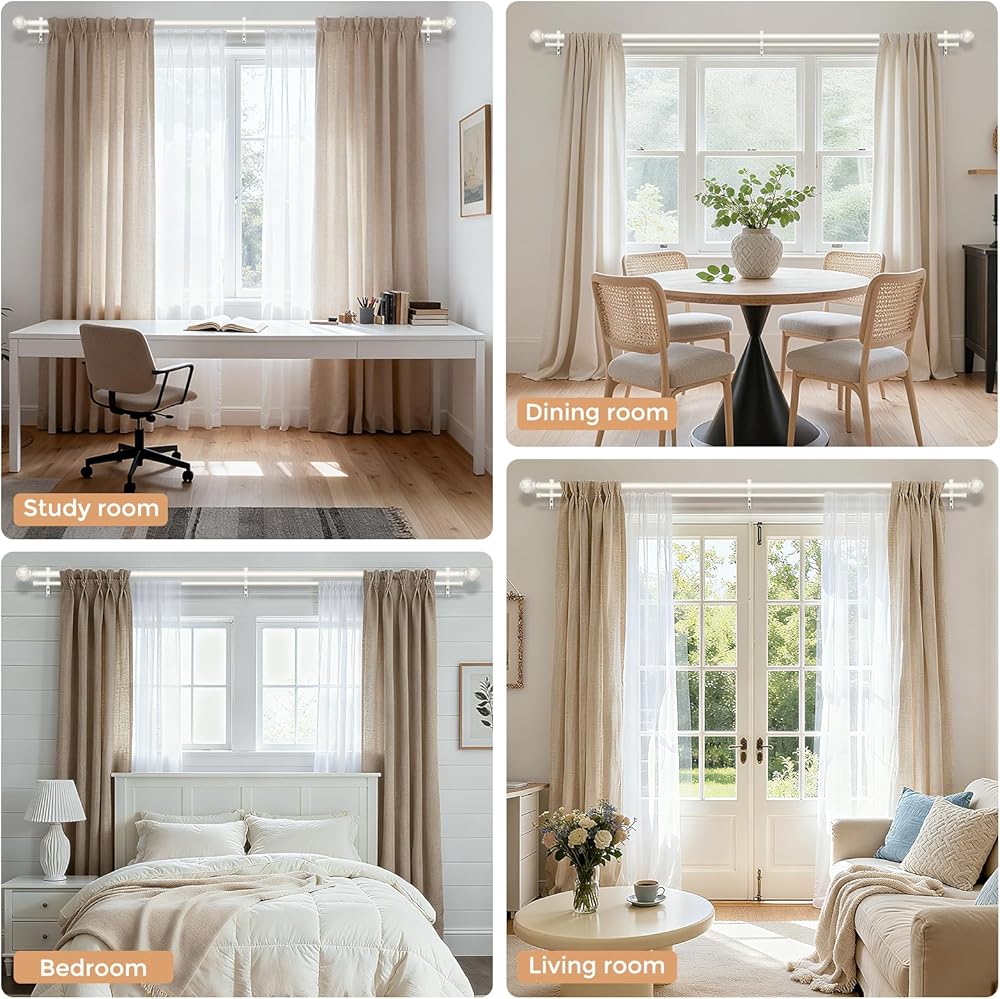 [LENGTH ADJUSTABLE CURTAIN ROD]: Our long double curtain rod is designed with one side retractable, just adjust the length of the rod, it can be easily applied to all kinds of windows. Each double curtain rod is treated with a precision baking process, the surface is always smooth, and the grommets won't get stuck when sliding the curtains