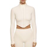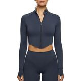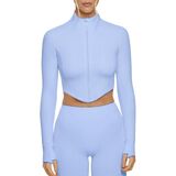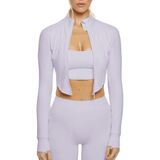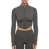 The jacket includes side zip pockets and hidden inner compartments—perfect for storing keys, cards, or a phone securely. It pairs well with leggings, shorts, or casual trousers, making it versatile enough for both active and everyday wear.