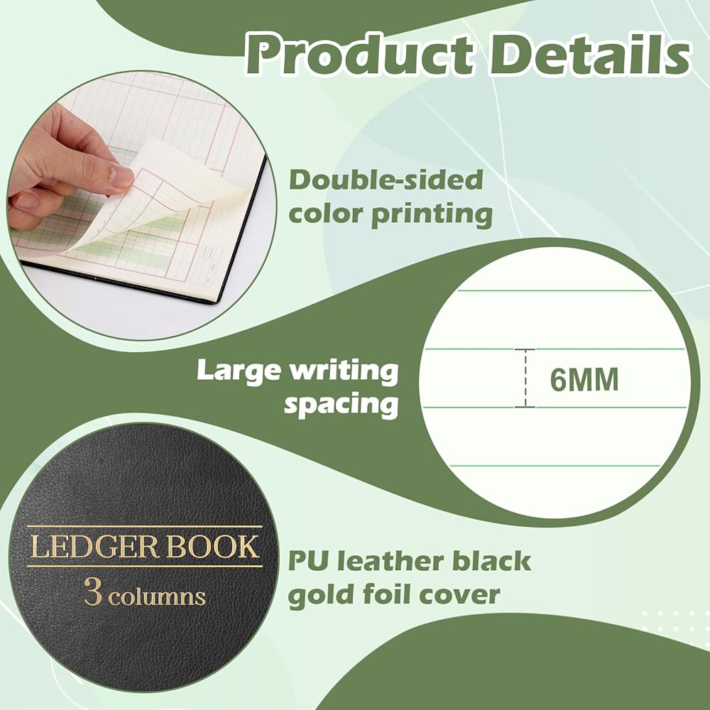 Large Capacity: Record per book contains 50 sheets of 80g double-sided offset paper. Each page features 30 clear lines of writing and a 3-column categorization layout. Double-sided color printing ensures clear and smudge-proof text. The notebook includes a marker bar for quickly marking important items or reconciliation points. With a total of 1500 writing positions, it meets daily, monthly, and even annual accounting needs, eliminating the need for frequent notebook replacements.