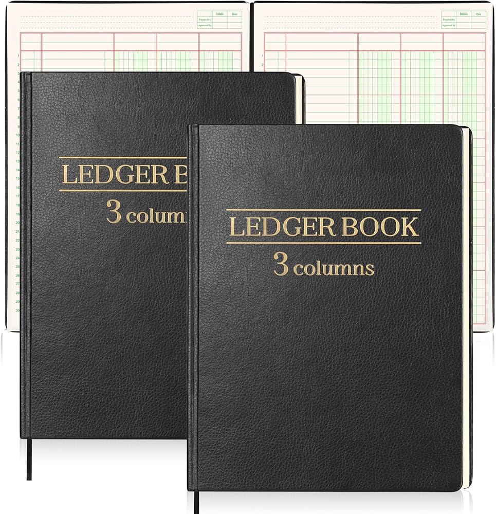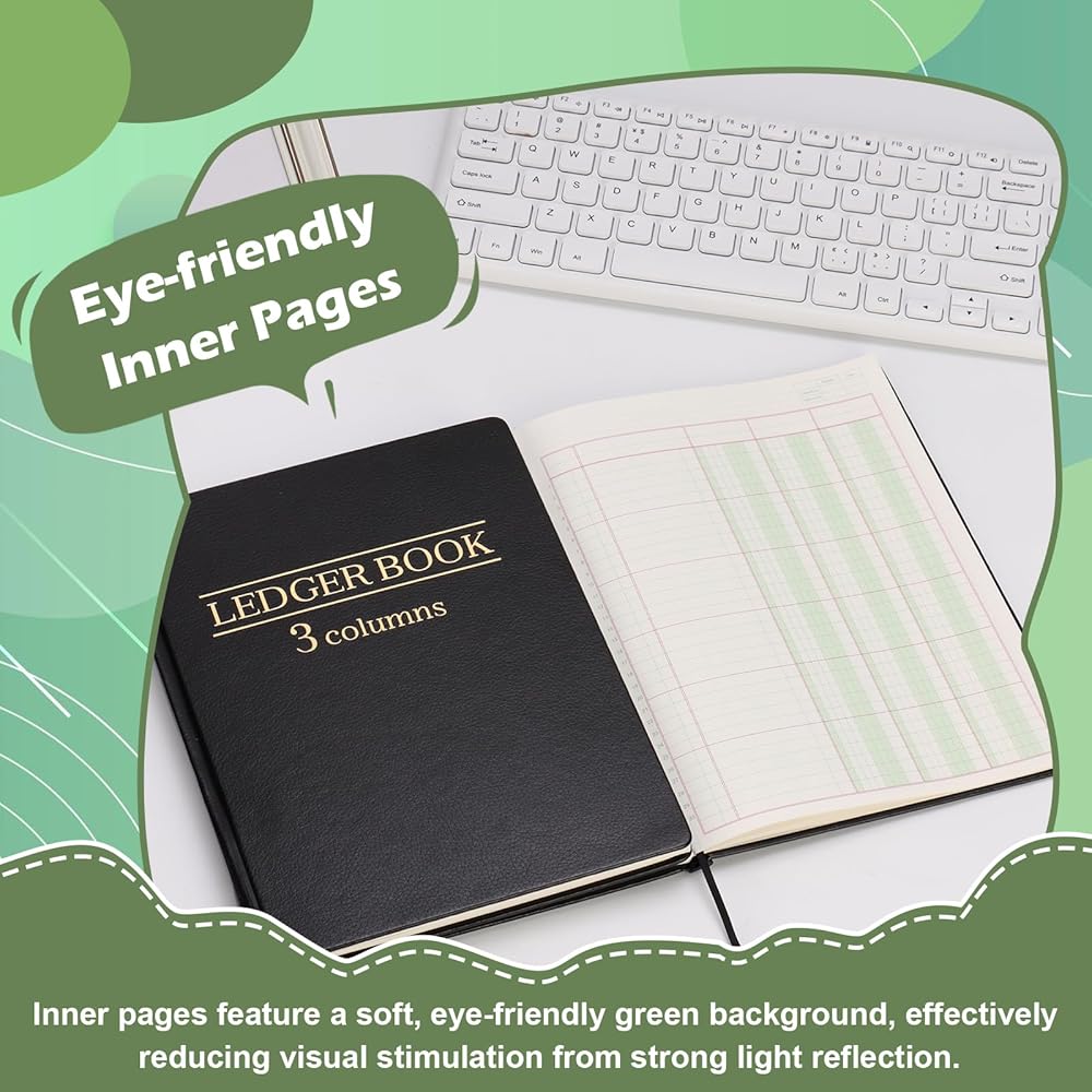 Ledger Book 3 Column 7 x 9.25 Inches Black Account Book with 1 Label Ribbon 50 Pages Each Columnar Book 30 Entries 80g Offset Paper Per Page Record Book for Money Budget Logs Finance Business