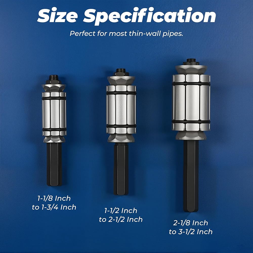 - Overall Coverage: 1-1/8" – 3-1/2" ID thin-wall pipe