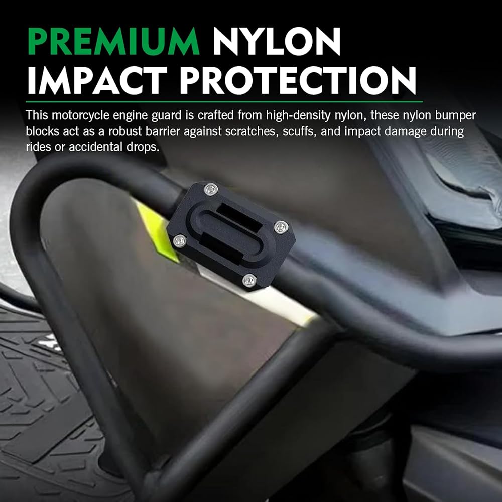 Durable Motorcycle Bumper Protection: Crafted from high-strength nylon, the blocks are designed to absorb shock and resist abrasion during low-speed impacts, effectively shielding your crash bars and engine components.