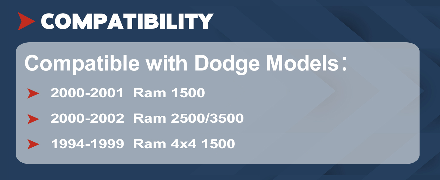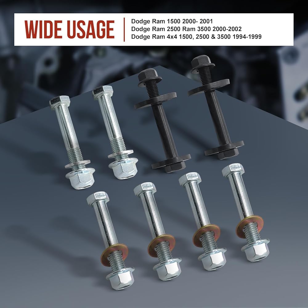 Control Arm Bolts Kit Specific Vehicle Design: Custom-designed for Dodge Ram 1500 2000-2001, Ram 2500/3500 2000-2002 models, this kit ensures a perfect fit and dependable performance.