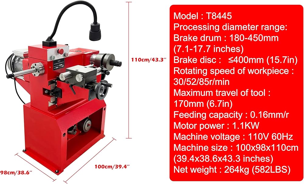 30/52/85 RPM Variable Speed Control: Adjustable spindle speeds optimize material removal rates for 180-450mm brake drums and ≤400mm discs