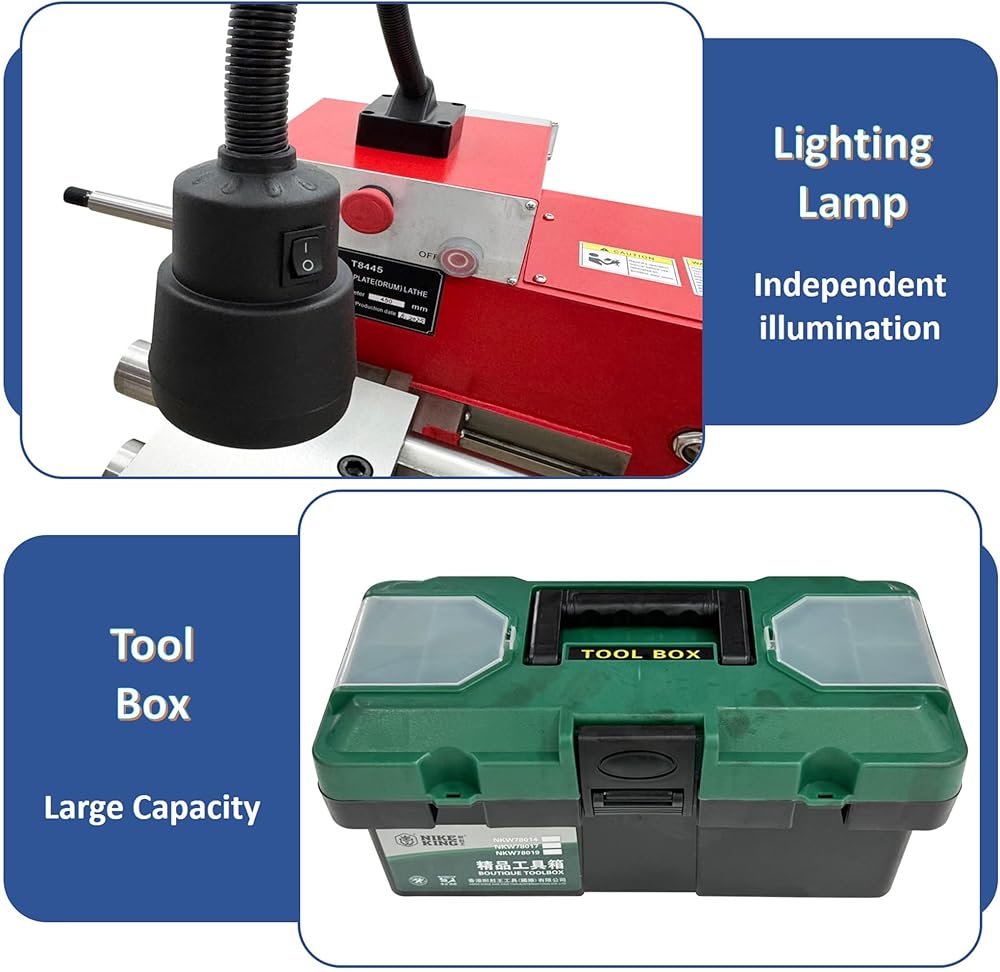 Tool Storage & LED Workspace Illumination: Dedicated 12-tool magnetic holder keeps accessories organized. Built-in 12V LED ring light illuminates dark work areas, reducing eye strain during precision grinding