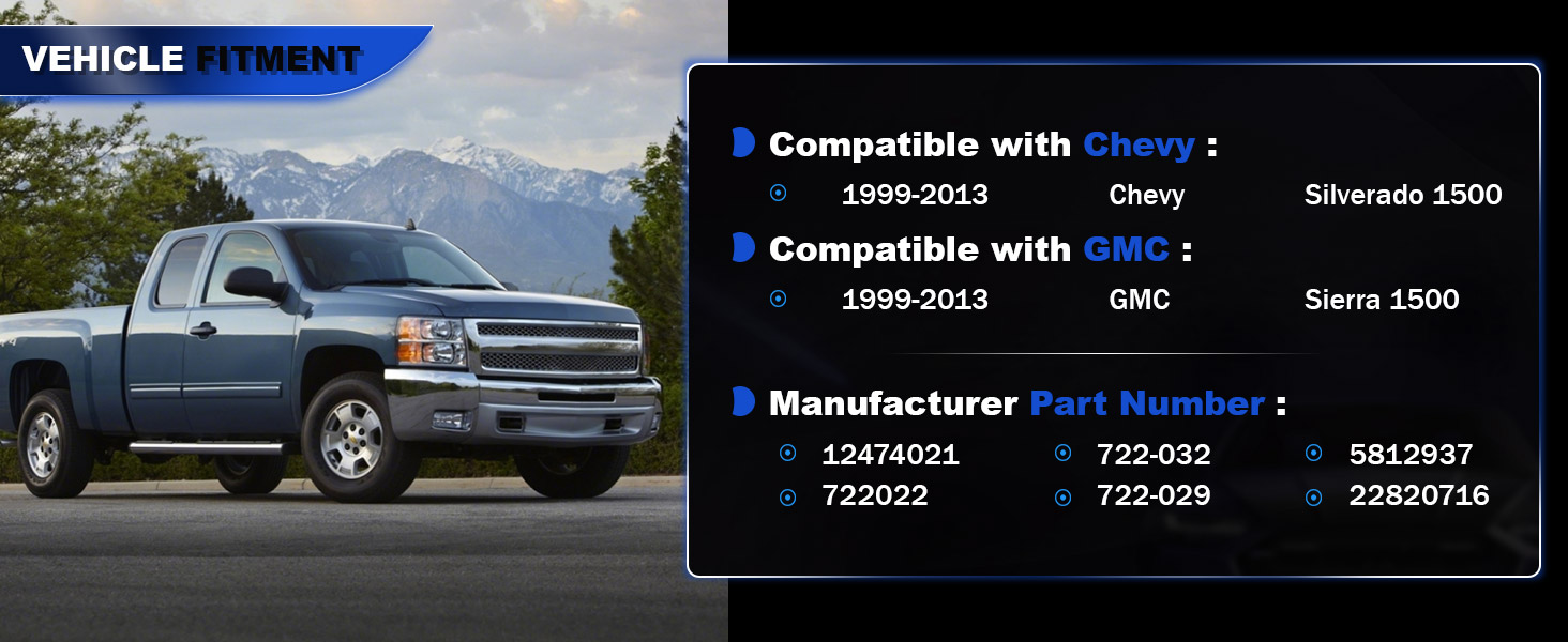 Get a Perfect Fit for Your Car: Engineered specifically for your vehicle, this kit provides direct compatibility with 1999-2013 Chevy Silverado 1500, 1999-2013 GMC Sierra 1500