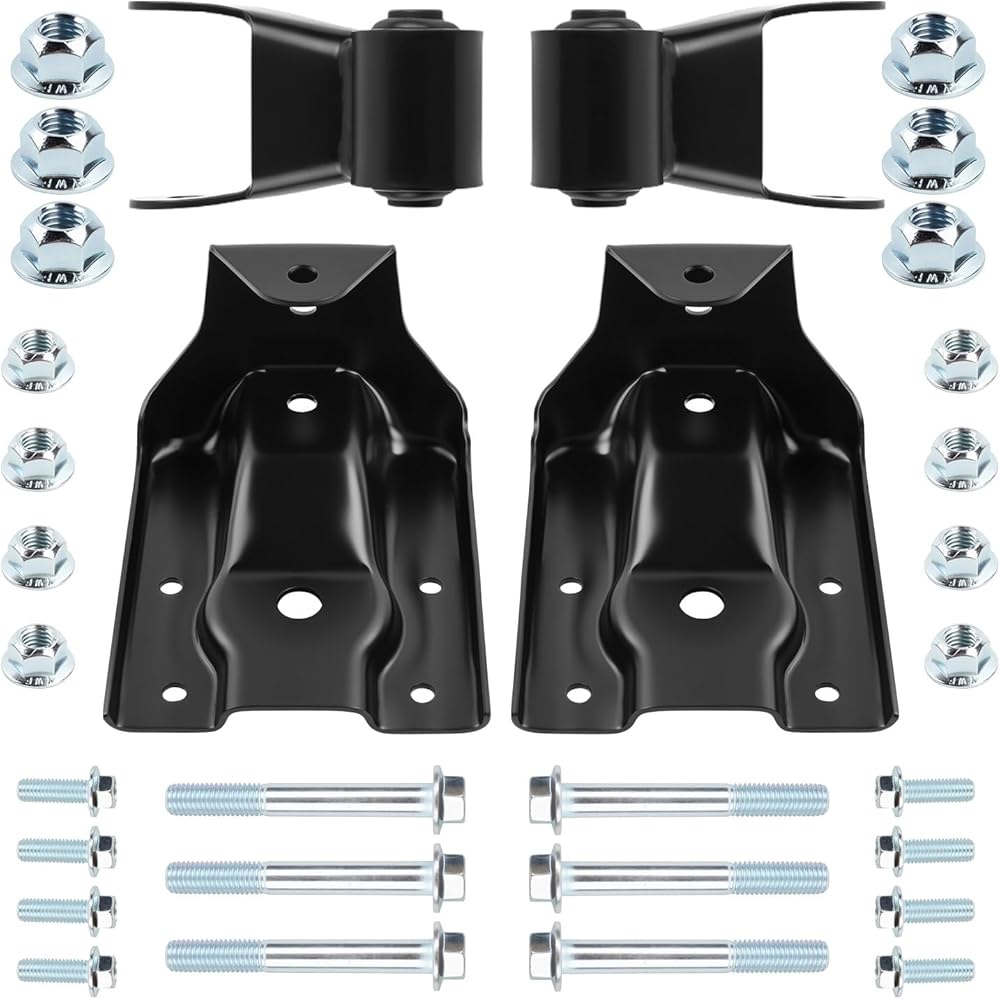 Premium Direct Replacement: This heavy-duty rear leaf spring shackle kit is engineered to restore your truck's original ride characteristics. Manufactured to meet or exceed OEM specifications for precise fitment and performance. Direct bolt-on installation requires no modifications