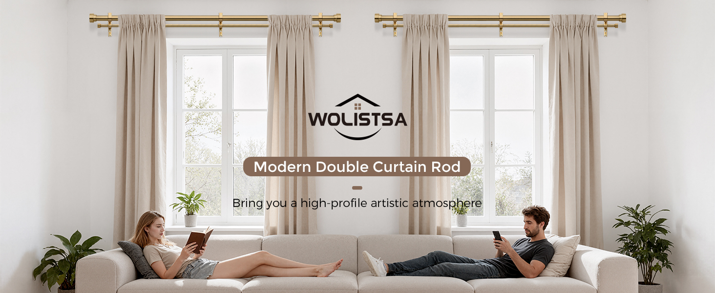 [BRASS DOUBLE CURTAIN ROD]: Crafted from premium aerospace-grade alloy, every finials enveloped in a multi-layer nano-plating process. Beneath the shimmering surface lie the smooth curves meticulously hand-polished by artisans and a dense, durable coating. Wolistsa believe true luxury stems from an unwavering dedication to materials: oxidation-resistant, wear-resistant, and built to last, ensuring double curtain rod speaks of extraordinary craftsmanship