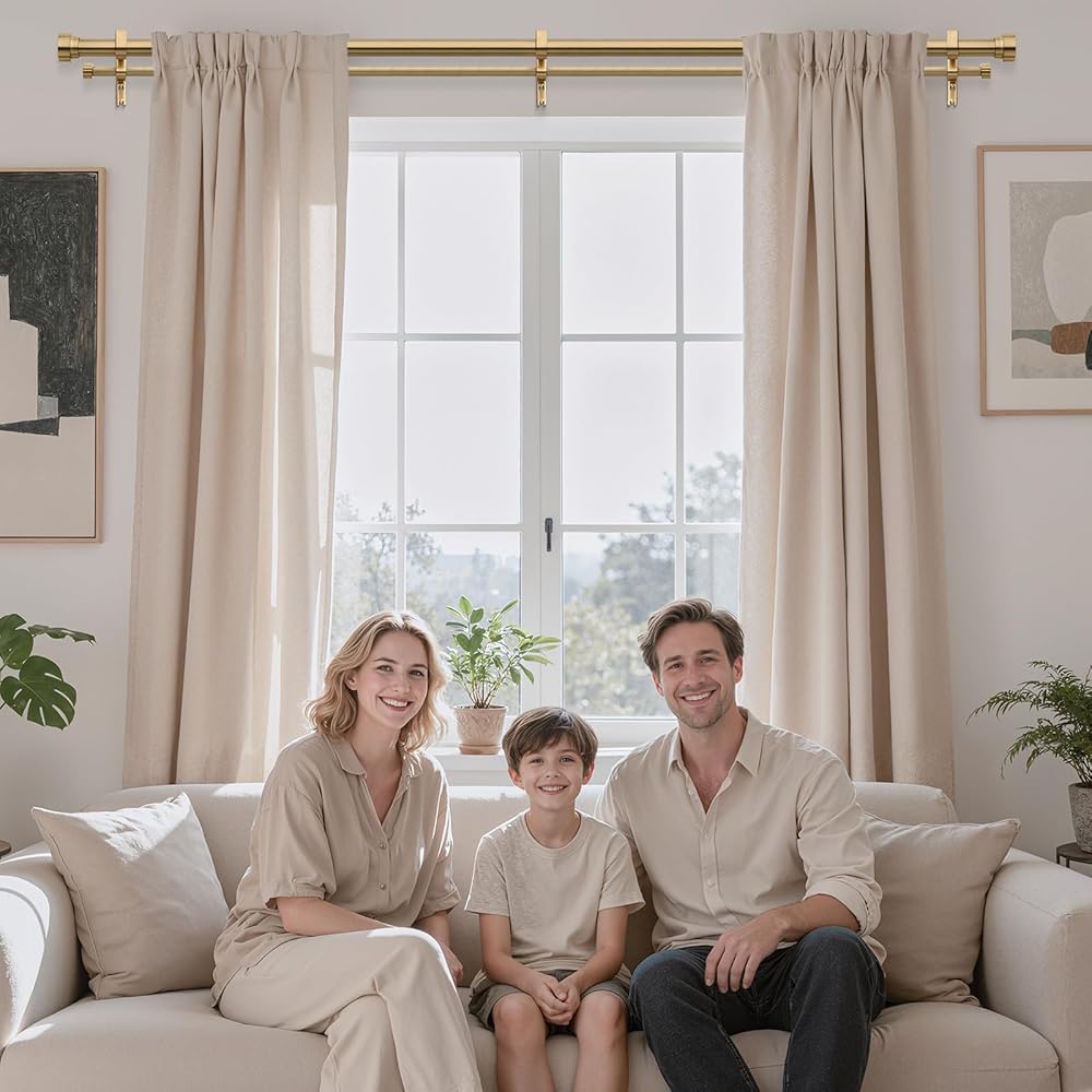 [WIDELY USED]: Our long double curtain rod is designed with one side retractable, just adjust the length of the rod, it can be easily applied to all kinds of windows. Strip away all superfluous details, return to the essence of line and material, interpret the true luxury requires no ornate embellishment. Double rod curtain integrates effortlessly into any setting, ideal for bedrooms, living rooms, kitchens, patios, study room or farmhouse