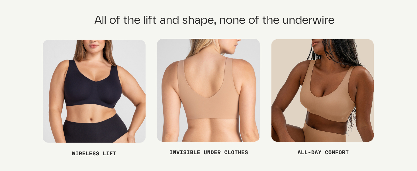 SUPPORT & LIFT: Our innovative bonded cradle construction delivers support that rivals traditional underwire bras without any poking wires causing you discomfort.