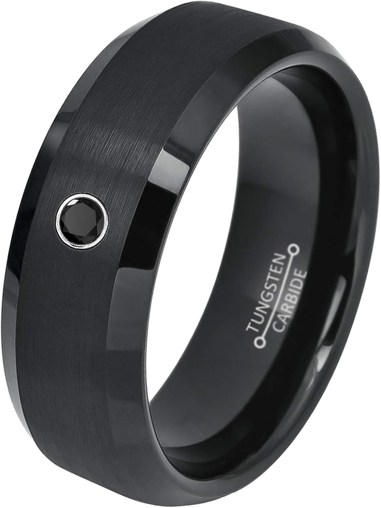 0.07ct Black Diamond Tungsten Ring - April Birthstone - 8MM Dome Black Ion-Plated Flat Brushed Finish Center Beveled Edge Comfort Fit Unisex Wedding Anniversary Band in Kuwait 0.07ct Black Diamond Tungsten Ring - April Birthstone - 8MM Dome Black Ion-Plated Flat Brushed Finish Center Beveled Edge Comfort Fit Unisex Wedding Anniversary Band in Kuwait