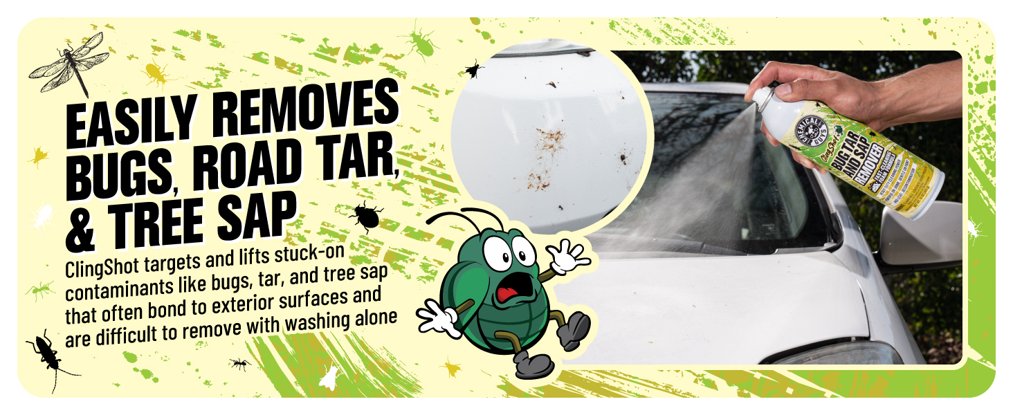 Bug splatter, tree sap, and tar spots can bond to your paint and glass fast, especially after highway driving. Bug, Sap & Tar Remover Aerosol Spray is a pre wash cleaner that helps break down stubborn residue so you can wash with less scrubbing and better results.