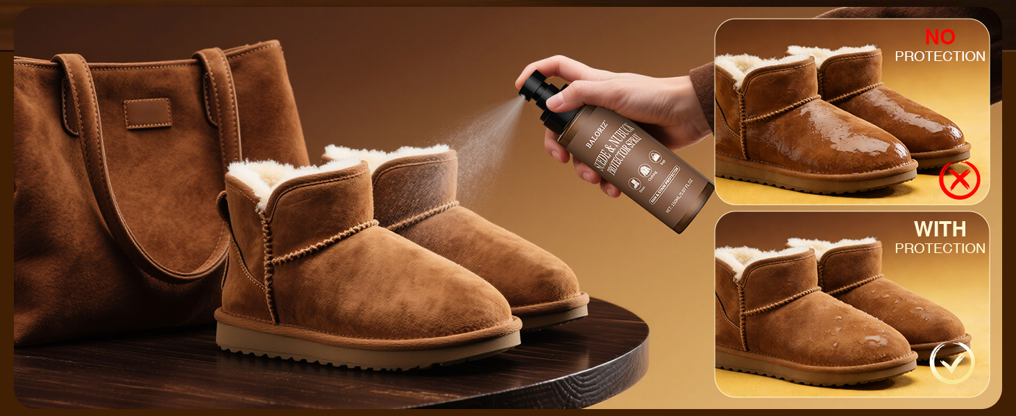 Powerful Waterproofing -- BALORIZ suede and nubuck protector spray features advanced hydrophobic technology that creates an invisible shield, ensuring unparalleled protection against water. forming a durable protective barrier, effectively resisting stains and water.