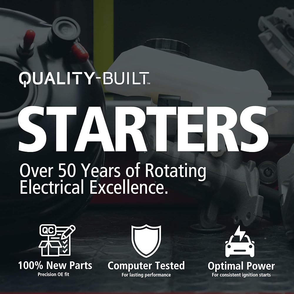 Whether you're firing up a daily driver or restoring an older vehicle, QUALITY-BUILT new and remanufactured starters are engineered to deliver confident, consistent cranking power. Every unit undergoes real-world durability testing to ensure performance that meets or exceeds OE specifications-no matter the conditions. Each starter features 100% new, premium sealed bearings for long-lasting durability, plus lead-free brushes that improve conductivity and reduce resistance. Precision-machined commutators and thoroughly tested armatures optimize voltage transfer and output. The starter drive clutch is remanufactured using aerospace-grade lubricants for smooth, efficient energy delivery to the flywheel. From the solenoid to the starter drive gear, every component is inspected and upgraded where necessary to guarantee reliable performance. Built to handle the demands of modern engines, QUALITY-BUILT Starters are a smart, OE-quality replacement that delivers lasting value and peace of mind with every start.
