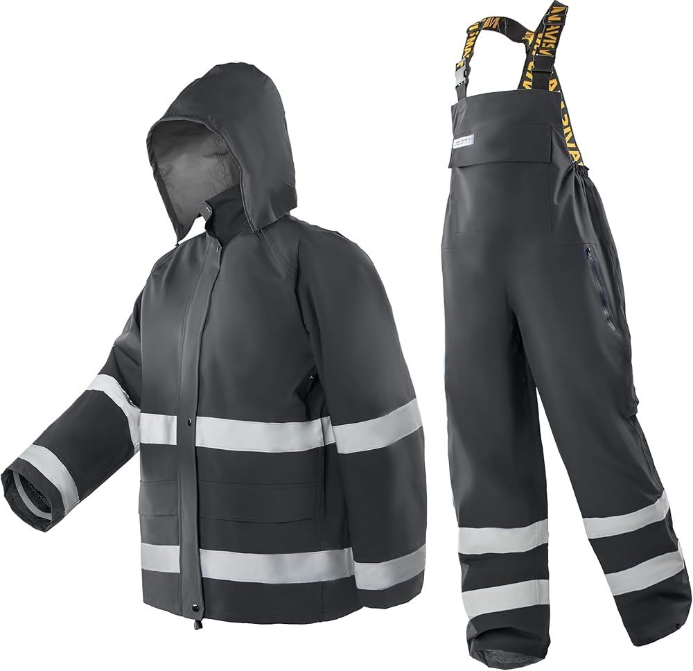 High-Visibility Rain Suit – Engineered for safety with reflective tape for standout visibility in low light, fog, and rain. Your essential wet-weather gear.