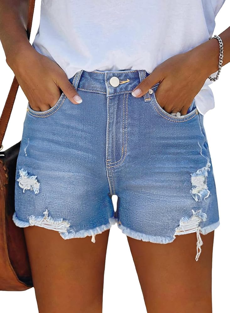 Match: Women's distressed denim shorts pair perfectly with crop tops, tank tops, casual T-shirts, peplum tops, vests, and blouses. Style them with boots, heels, or sandals to easily create a variety of trendy casual looks.