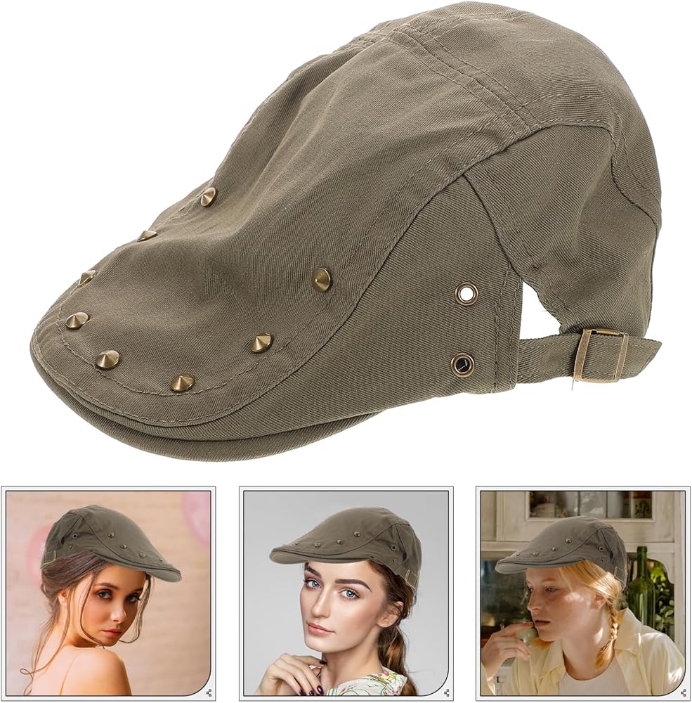 newsboy cap Great for spring and summer, this lightweight and breathable cap ensures comfort throughout the day.1920 hat Embrace a blend of vintage charm and modern style with our Retro Studded News boy Cap for women.flat hats for woman Inspired by the classic beret, this hat features unique studded embellishments that add a touch of individuality and fashion-forward flair.womans newsboy hats and caps Stand out with this exclusive design that showcases your unique taste