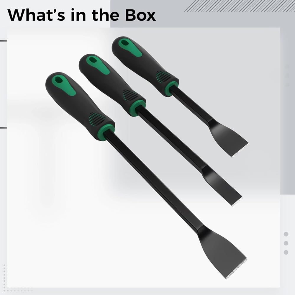 Resilient carbide edge: featuring a tough carbide steel head; the scraper set offers high-end durability; easily removes stubborn gunk; its sharp edge conquers tough cleaning scenarios; creating an easy cleaning experience