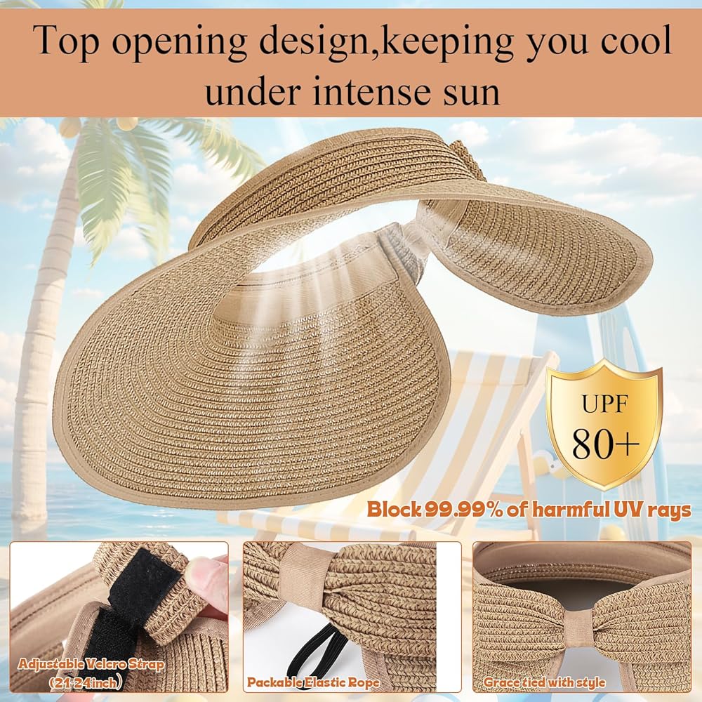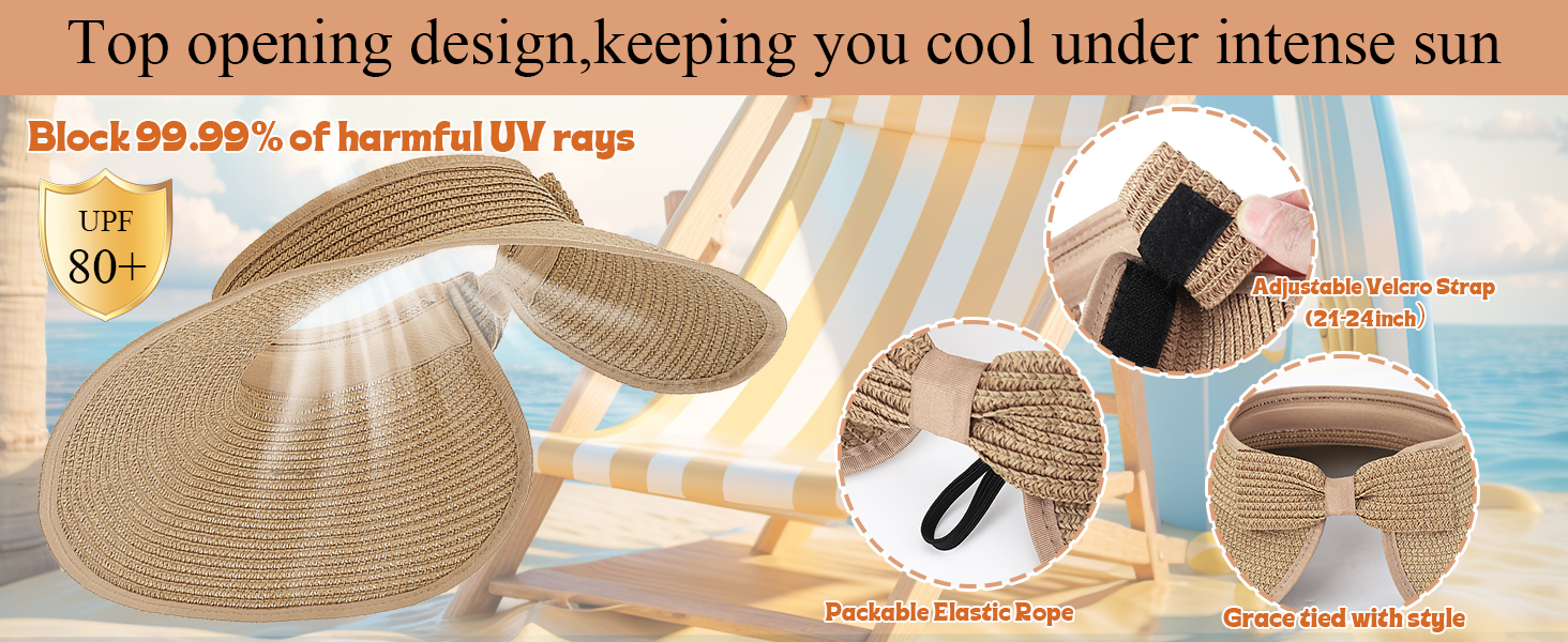 - Stylish & Functional Design: Straw visors for women open top ponytail-friendly with adjustable hook-and-loop closure fits most sizes