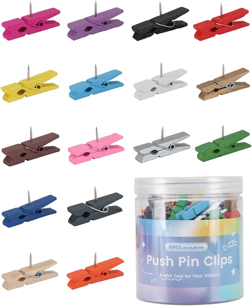 Vibrant Wooden Push Pins: Get the complete organizing solution with this bulk set of 80 sturdy wooden push pins, featuring 16 vibrant colors (5 pins each). Crafted from solid wood, these decorative tacks are built to resist breaking and fading, ensuring your displays remain colorful and secure for long-lasting use in any environment