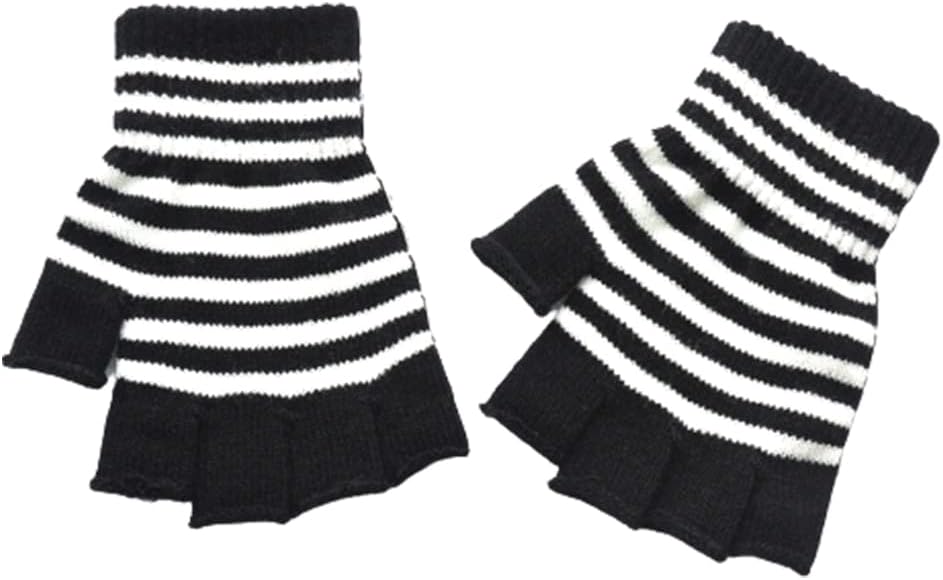Knitted Gloves Winter Half Finger Mittens Stretchy Color Matching Gloves for Teens Christmas Presents