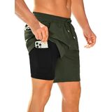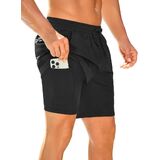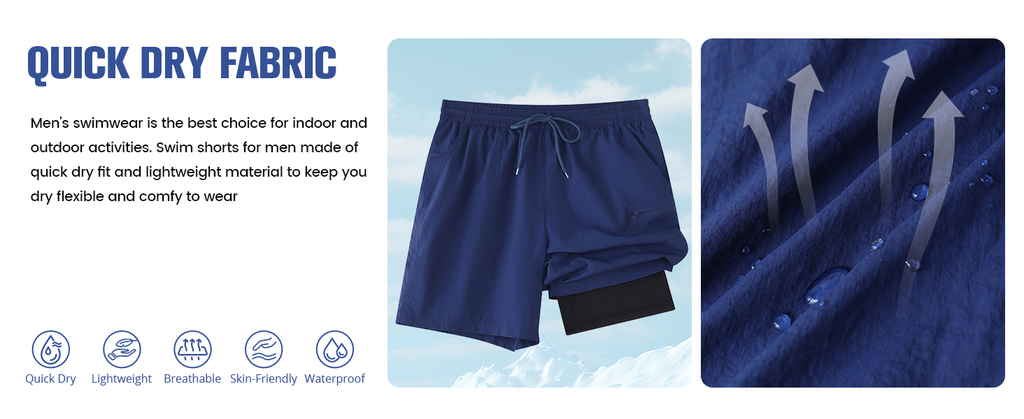 5 Functional Pockets: 2 in 1 shorts men designed with multiple practical pockets (2 side pockets with mesh liner, 1 left thigh zipper pocket, 1 right back zipper pocket and 1 linner pocket) these mens board shorts swimwear provide ample space for essentials like your phone, keys, or wallet, combining functionality with style for all your outdoor adventures