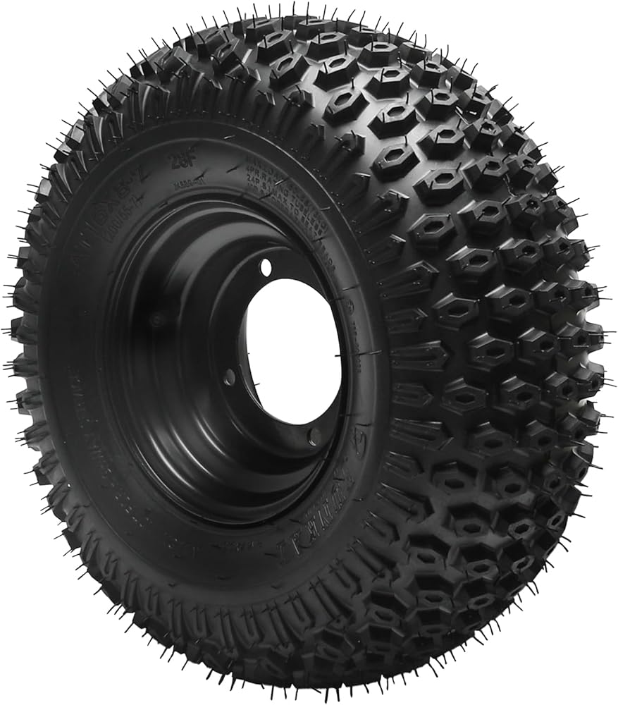 Product Features & Specifications Tire Size: 16x8-7 / 16x8.00-7 / 200/55-7 Rim Size: 7 Inches Bolt Pattern: 4-Stud, 110mm (4.33") Spacing Tire Construction: 4-Ply Rated (4PR) Nylon, Tubeless Rim Model: FY-002-012 with Fire Pattern Design Rim Type: 5.0 AT Rim Mounting Style: 4-Hole Design Intended Use: Off-Road/Recreational Only (Not for Highway Use) Package Quantity: 4 Complete Wheel & Tire Assemblies Key Features Complete 4-Wheel Set: Includes four pre-mounted tire and rim assemblies for full vehicle upgrade Heavy-Duty 4-Ply Construction: 4PR nylon tires provide superior puncture resistance versus standard 2-ply options Versatile All-Terrain Design: Suitable for various outdoor conditions and recreational applications Tubeless Technology: Eliminates inner tubes for easier maintenance and enhanced reliability Universal 4-Stud Pattern: 110mm bolt spacing fits many ATV, UTV, and utility vehicle models Ready-to-Roll Installation: Pre-assembled wheels mount directly to your vehicle's hubs Compatibility Vehicle & Equipment Applications: ATVs and Quad Bikes UTVs and Side-by-Sides Go-Karts and Dune Buggies Lawn Mowers and Grounds Maintenance Equipment Mini Bikes and Small Utility Vehicles Agricultural and Industrial Carts Recreational Off-Road Vehicles Important Notes: For off-road/recreational use only - NOT approved for highway or street use Verify your vehicle's bolt pattern matches 4-stud 110mm spacing Confirm axle/hub diameter compatibility with rim center hole Ensure adequate clearance for 16" tire diameter and 8" width Package Includes 4 x Complete Wheel Assemblies (Each includes: 7-inch rim with pre-mounted 16x8-7 4PR tubeless all-terrain tire)