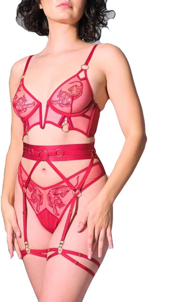 The paramount lingerie wardrobe update, styled with the new Tigris Collection. Complete any black set or style with this luxe harness. Garter belt with a detachable choker and lead. Adorned with stunning, nickel-free rings. Fully adjustable collar and waist strap. Thigh garters sold separately.