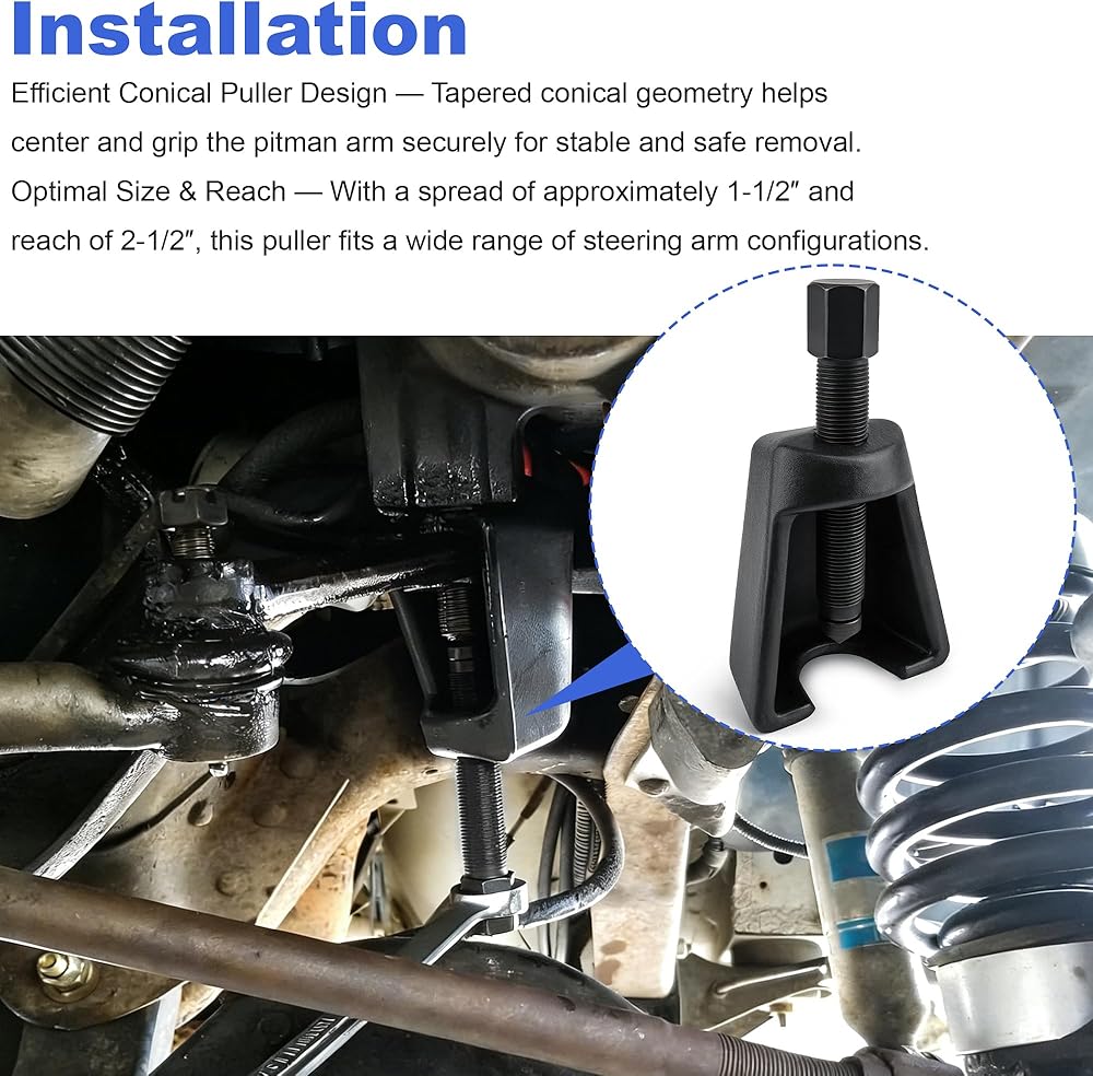 Efficient Conical Puller Design — Tapered conical geometry helps center and grip the pitman arm securely for stable and safe removal.