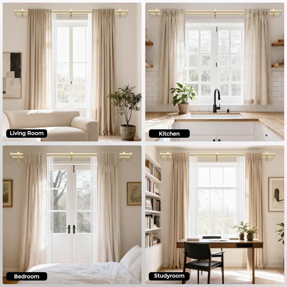 [EASY INSTALL CURTAIN ROD]: For even simpler installation, this Wolistsa brass double curtain rod comes complete with brackets, screws, drywall anchors, and clear instructions for successful installation in just a few easy steps, so you'll have more time to admire your double curtain rod gold. Because of the simple construction of our double rod curtain, it's very easy to perform daily curtain cleaning