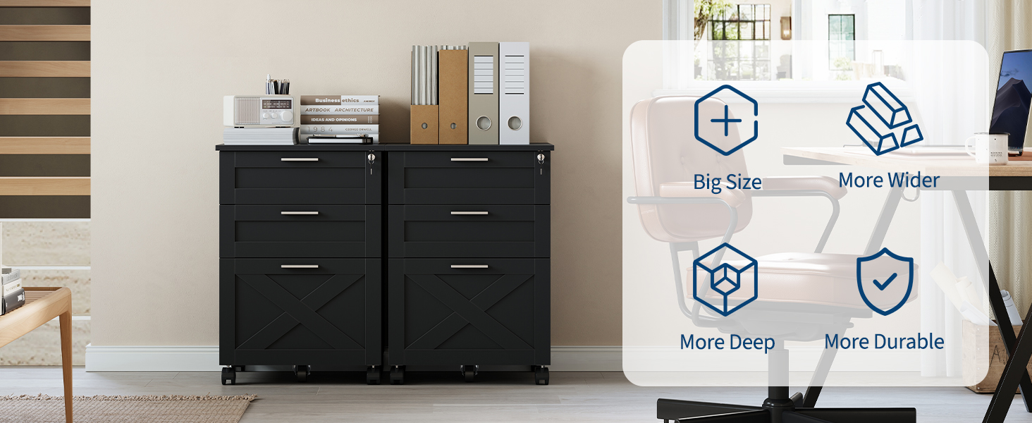 🛡️ Secure Locking & Enhanced Stability: Keep your confidential documents safe with the integrated central lock that secures all three drawers simultaneously. Features an anti-tipping wheel for superior stability, ensuring the cabinet remains steady even when drawers are fully extended. Your files and the cabinet are secure at all times