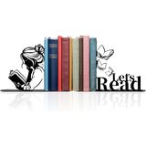 Metal Girl Reading Book Bookends,Lets Read Bookends for Shelves Bookshelf Decorative Objects Home Office Desk Bookshelf Decor Nice Gift for Women (Black)